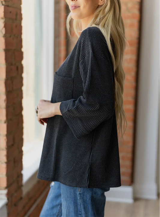 Sold outMocha 3/4 Sleeve Ribbed Top