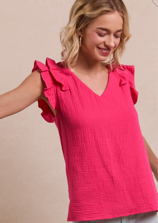 Pink Flutter Sleeve Top