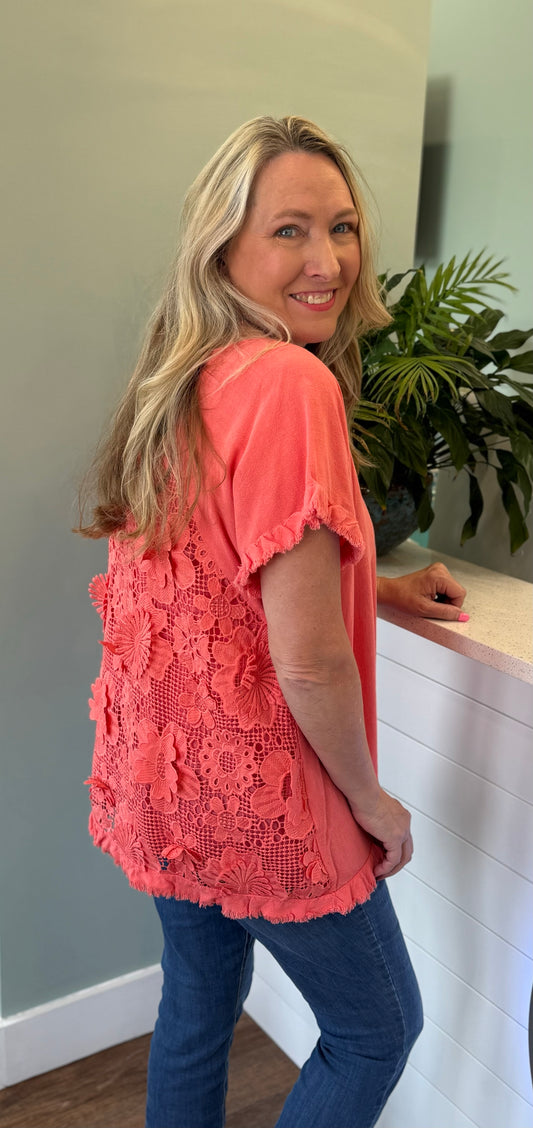Coral Floral Back Top (P)