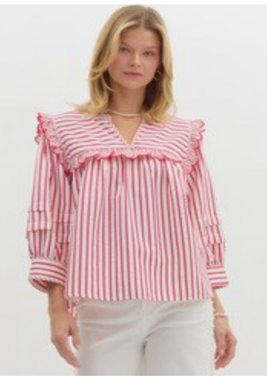 Red Striped Flutter Sleeve Top