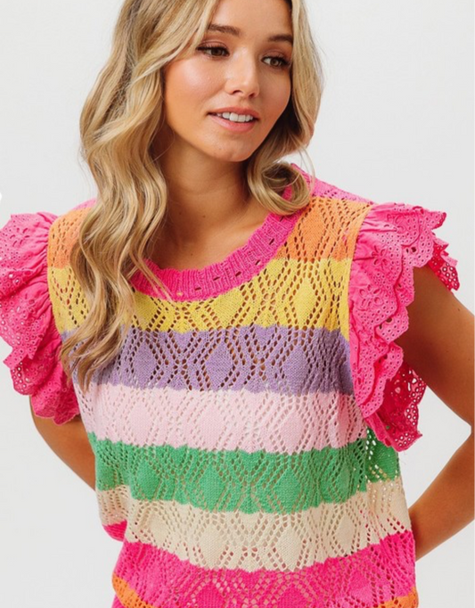 Striped Open Weave Sweater