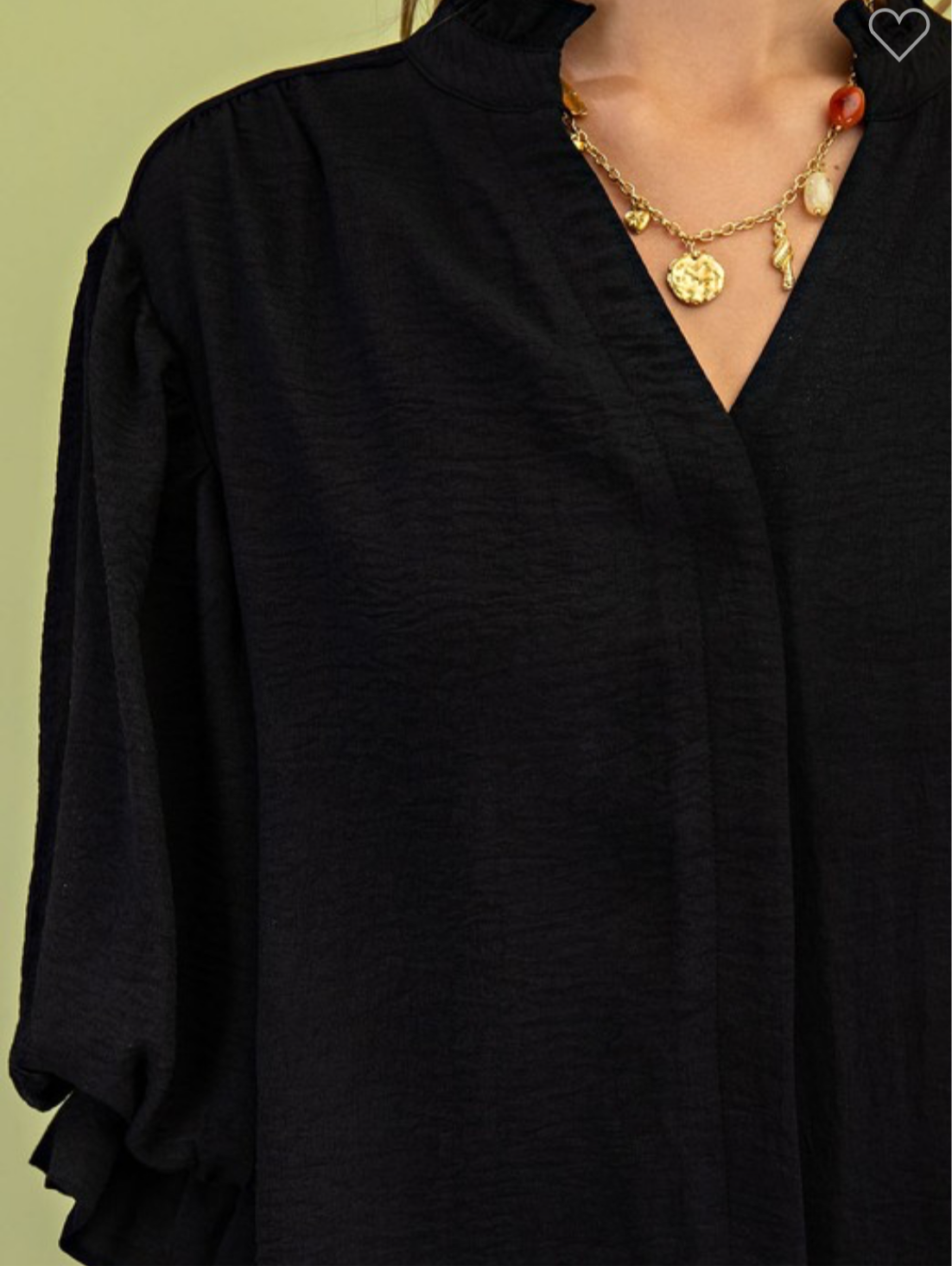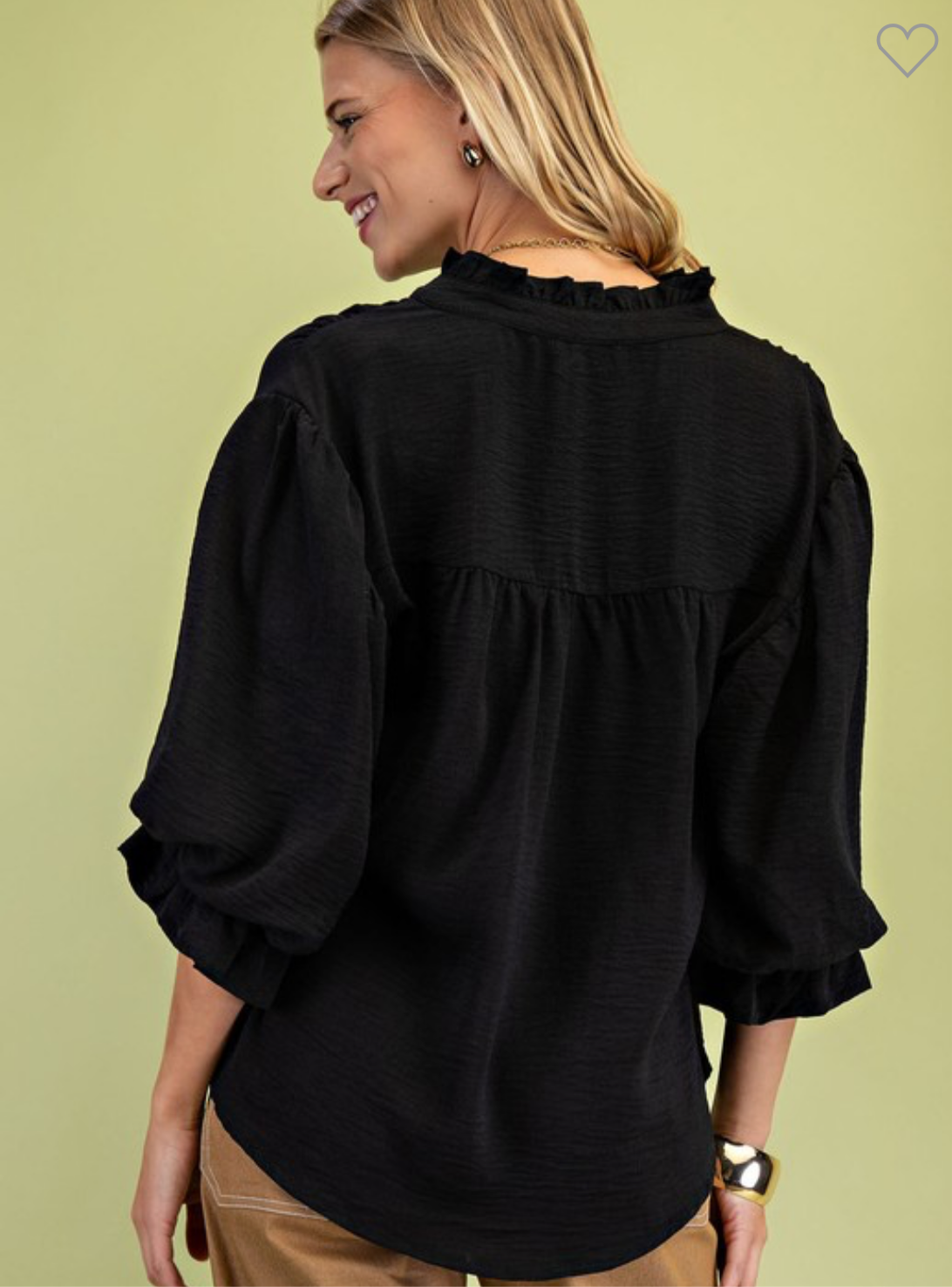 Add a touch of elegance to your wardrobe with our Burgundy 3/4 Balloon Sleeve Top. The v neck design and functional button front make this top both stylish and versatile. Enjoy the comfort and confidence of the flowy 3/4 balloon sleeves.