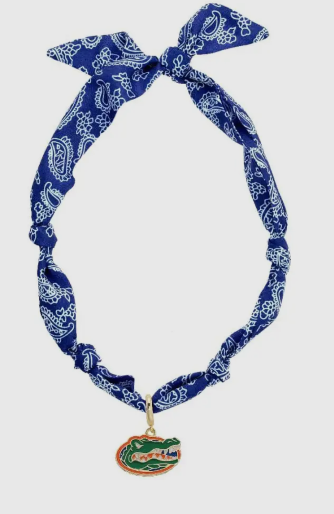 Add some playful pizzazz to your outfit with our Gator Scarf Necklace! This unique accessory features a bold blue scarf with a charming gator pendant. Show off your fun and quirky style with this statement piece.