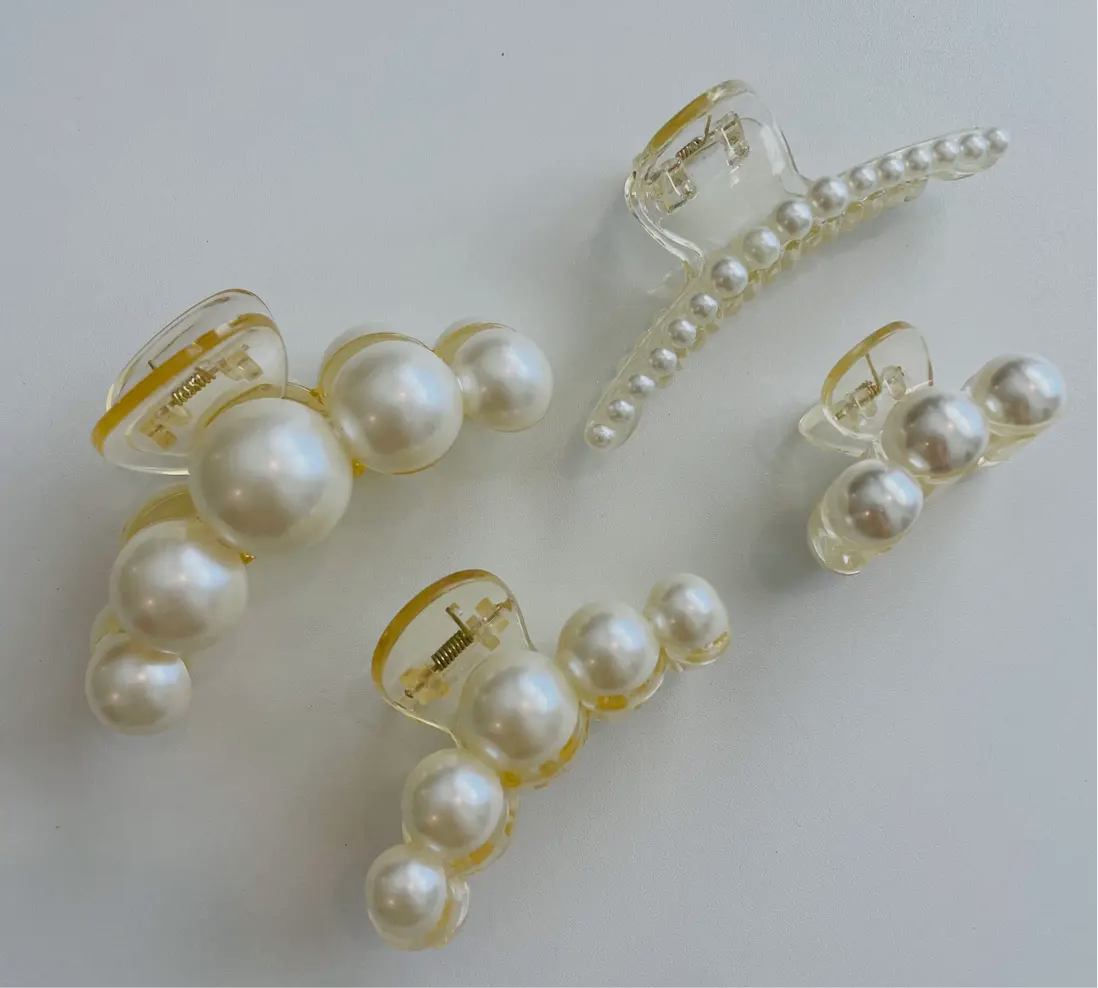 Elevate your hair game with our Medium Pearl Claw Clip. This elegant clear clip features delicate pearls on each side, adding a touch of charm to any hairstyle. Keep your hair secure while adding a touch of sophistication. Stay stylish with ease.