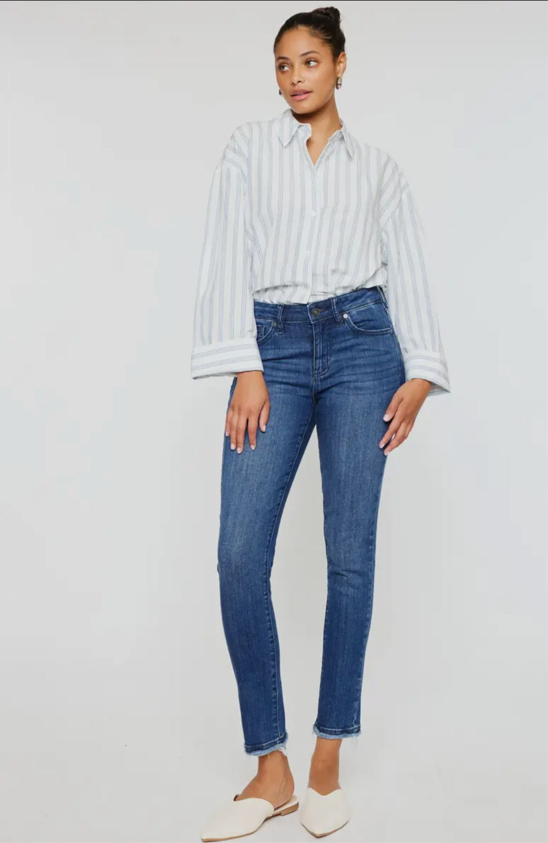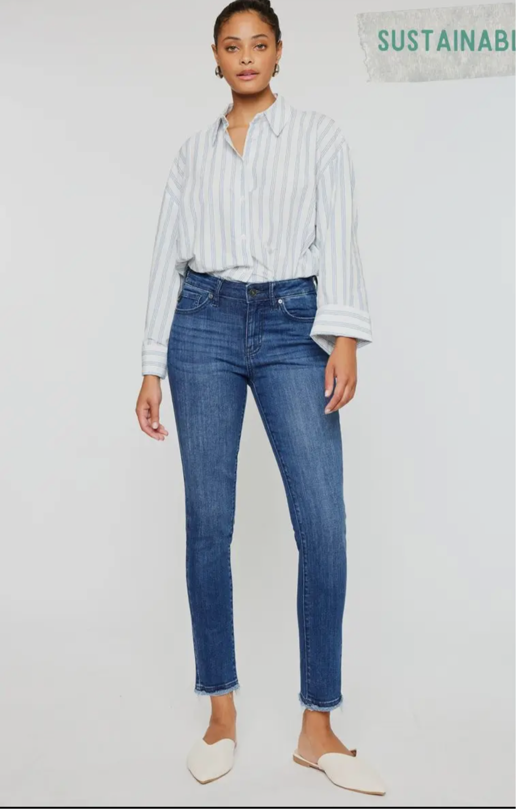 Discover the perfect blend of style and sustainability with our Mid Rise Ankle Skinny Kancan jeans. Made with eco-friendly materials, these mid rise ankle skinny jeans not only flatter your figure, but also reduce your environmental impact. Look good and feel good while wearing our Kancan jeans.