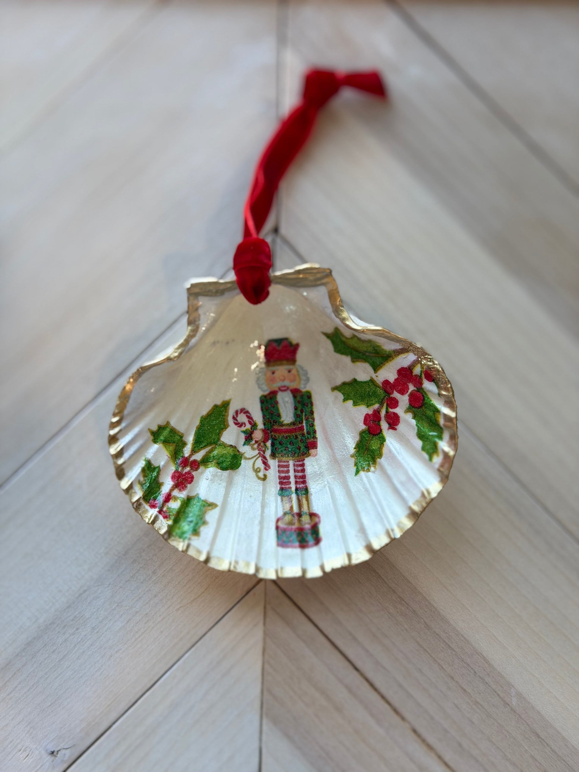 Introducing our latest coastal-chic creations: Hand-designed shell ornaments featuring classic Nutcracker in blue, pink, or red. Each shell is carefully selected, hand-designed, and finished with love from a local Panama City artist! Perfect for holiday décor, hostess gifts, or collectors!