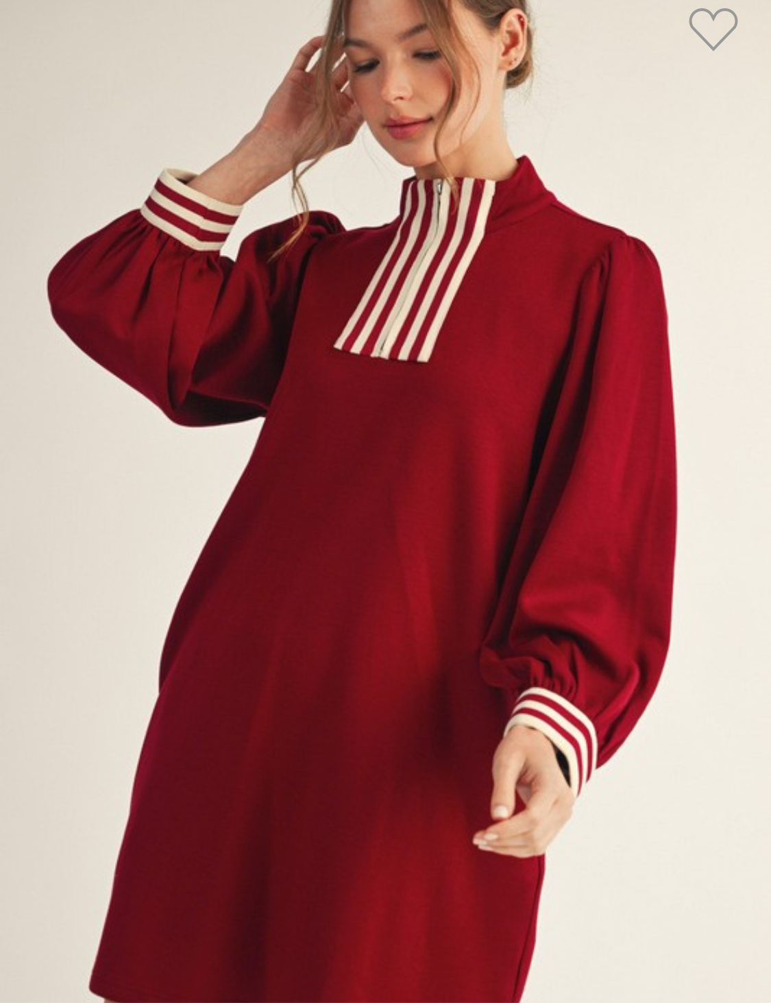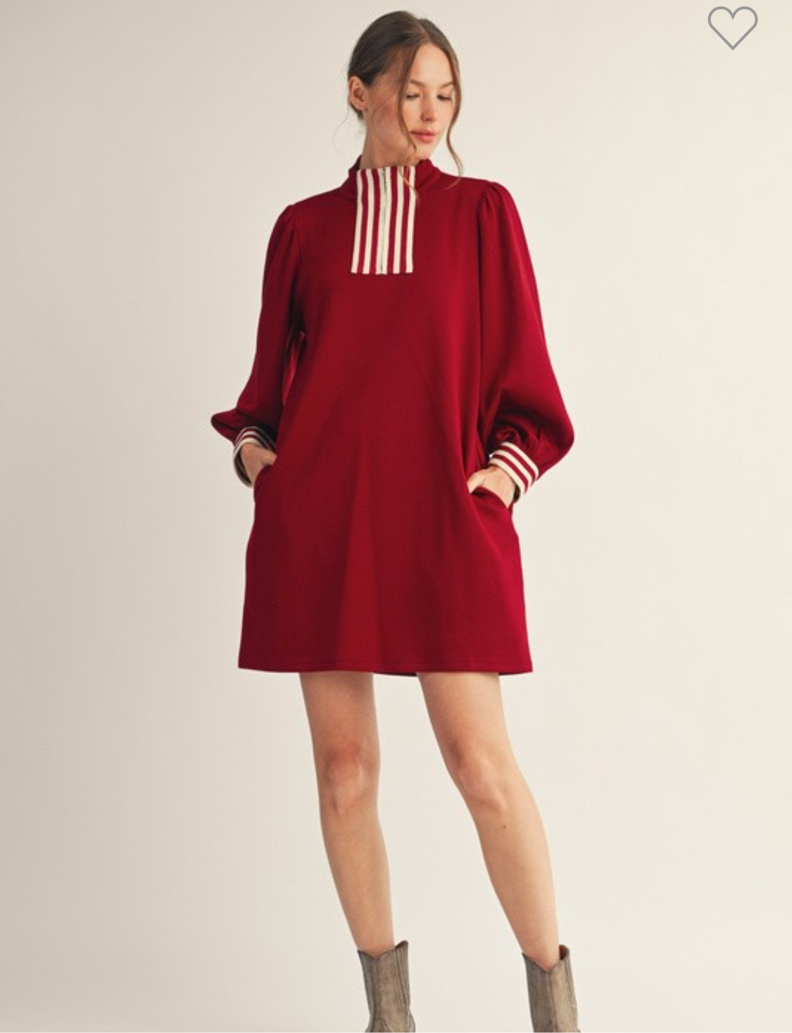 Get ready to turn heads in our Sporty Burgundy Dress! With its three quarter sleeves and contrast trim neckline and cuff, this dress combines comfort and style for a look that is both sporty and chic. Perfect for any occasion, you'll feel confident and trendy while wearing this dress.