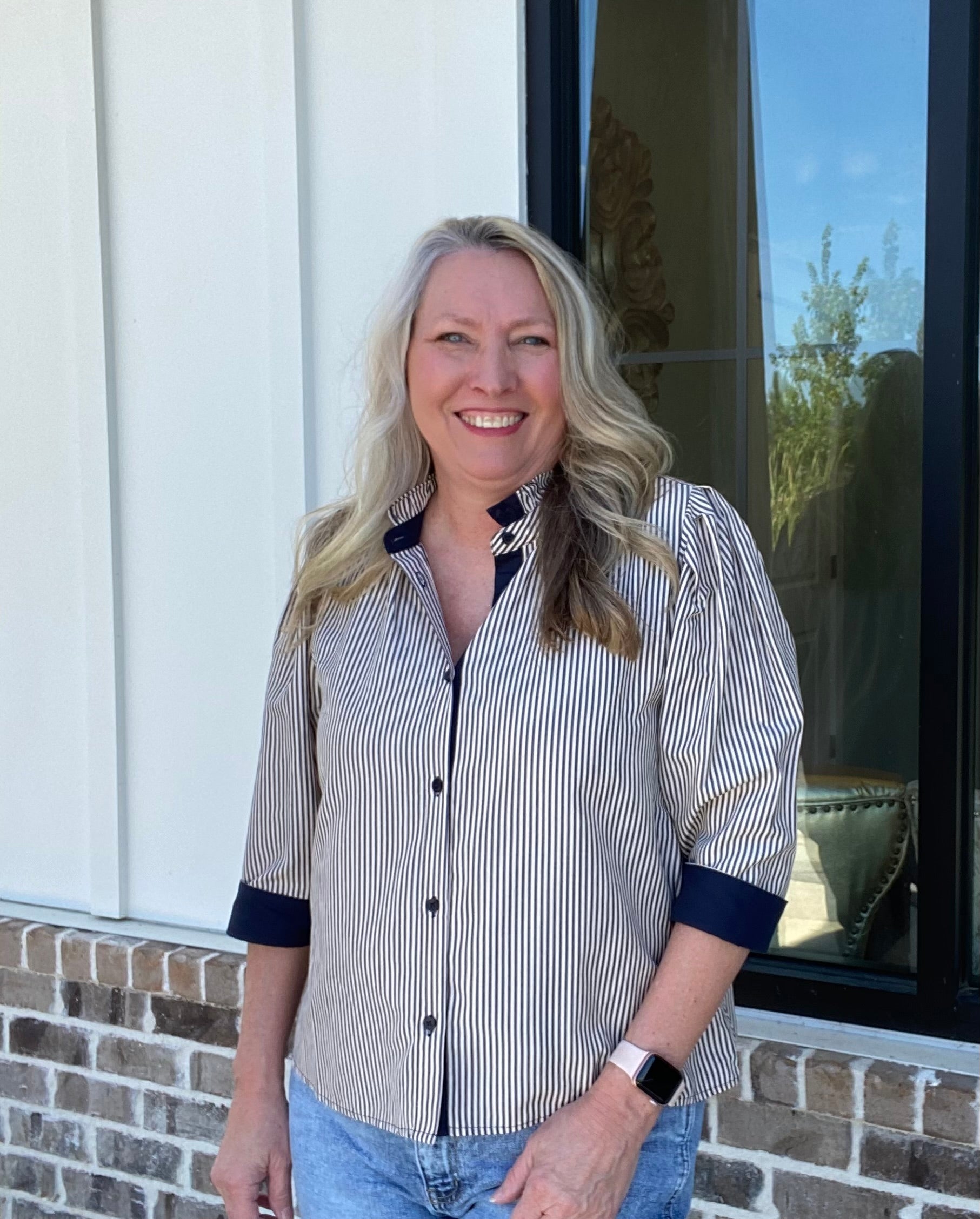 Navy Striped 3/4 Sleeve Top